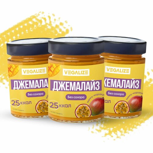 Джем 3 шт, Джемалайз VEGALIZE 3 шт, Манго-маракуйя, без сахара, низкокалорийный, фитнес-продукт, для похудения, постный