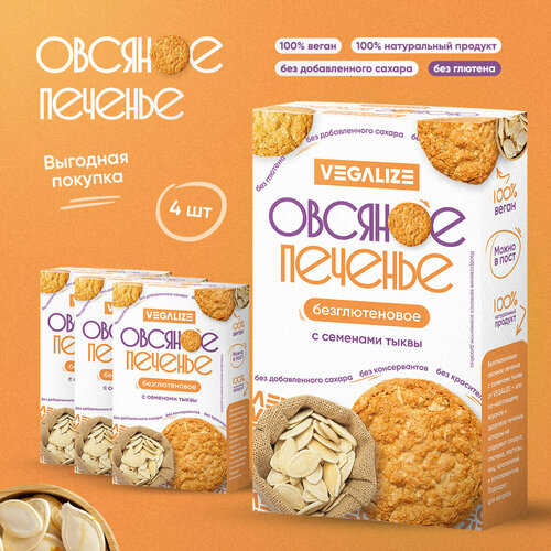 Печенье овсяное "С семенами тыквы" без глютена VEGALIZE, 4 шт