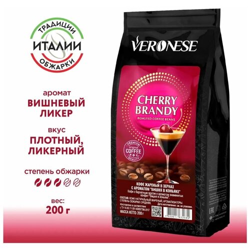Кофе в зернах Veronese Cherry Brandy с ароматом Вишня в коньяке, 200 г