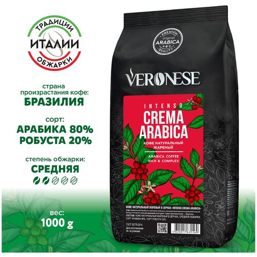 Кофе в зернах Veronese Arabica Brazil, средняя обжарка, 1 кг