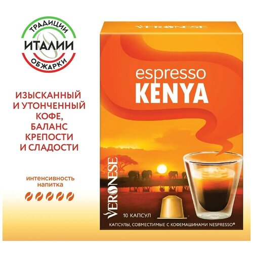 Кофе в капсулах Veronese Espresso KENYA, для кофемашин Nespresso, 10 капсул