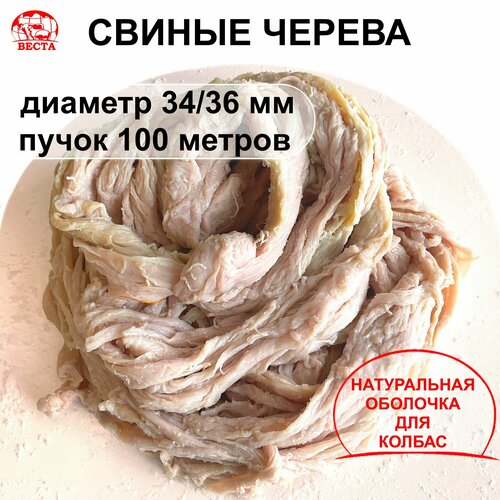 Черева для Колбас Свиные (34-36 мм) — Пучок 100 метров / Оболочка для Колбасы Натуральная