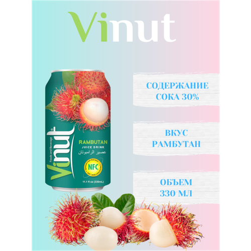 Сокосодержащий напиток Vinut 30% со вкусом рамбутан 330 мл, Вьетнам