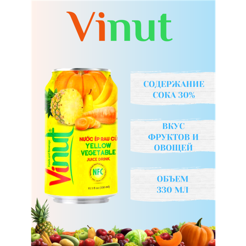 Сокосодержащий напиток Vinut 30% фруктово-овощной Yellow 330 мл, Вьетнам