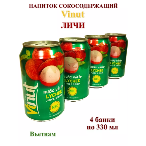 Напиток сокосодержащий Vinut Lychee со вкусом Личи , 4 банки по 330 мл.