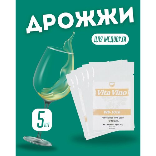 Винные дрожжи Vita Vino WB-1016, 5 шт по 8 гр, Италия (Дрожжи для винограда/слив/ягод, Вита вино ВБ-1016 для белого вина)