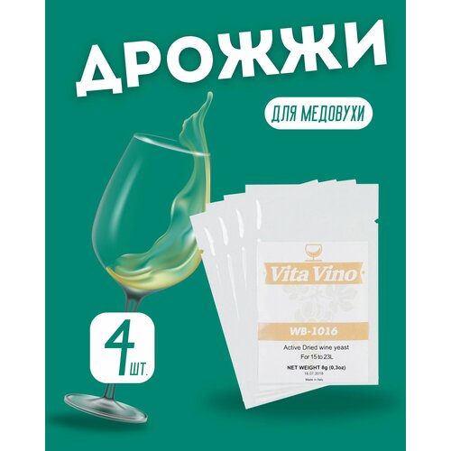 Винные дрожжи Vita Vino WB-1016, 4 шт по 8 гр, Италия (Дрожжи для винограда/слив/ягод, Вита вино ВБ-1016 для белого вина)