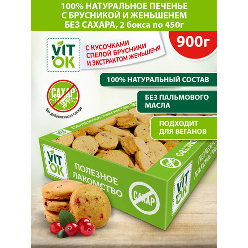 Vitok Полезное печенье без сахара с брусникой и женьшенем, натуральное, 2 бокса по 450 г