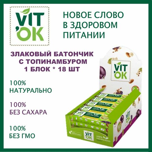 Батончик злаковый VITok с топинамбуром без сахара неглазированный для здорового питания 1 блок*18шт/Московская ореховая компания/Россия