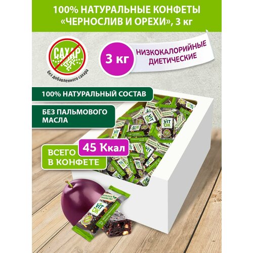 Конфета-батончик Vitok 100% натуральная полезная без сахара Чернослив и орехи, 3 кг