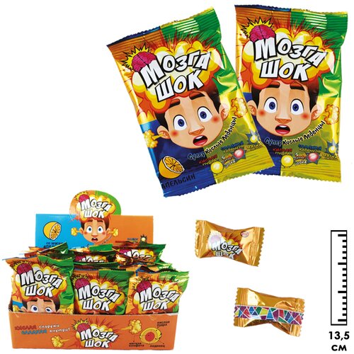 Кислые леденцы Волшебный Кондитер "мозга ШОК" со вкусом Апельсина / 30 штук по 16 грамм