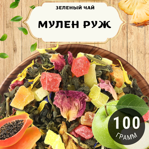 Зеленый чай с яблоком Мулен Руж от Вкусное Дари 100 г. Чай Китайский Крупнолистовой с ананасом