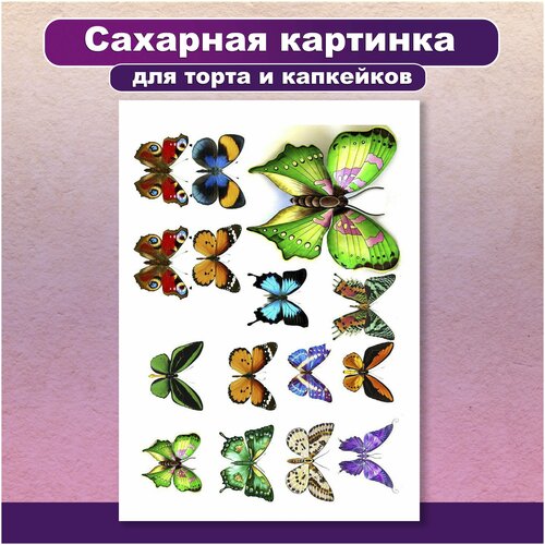 Сахарная картинка для торта и капкейков День Рождения бабочки. Украшение и декор торта выпечки. Сахарная бумага А4 / Вкусняшки от Машки
