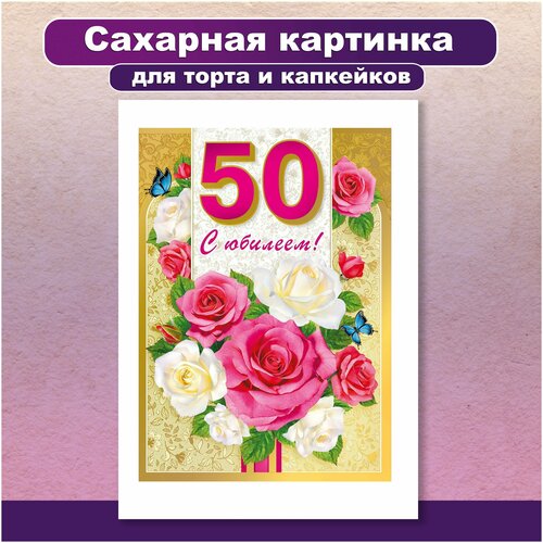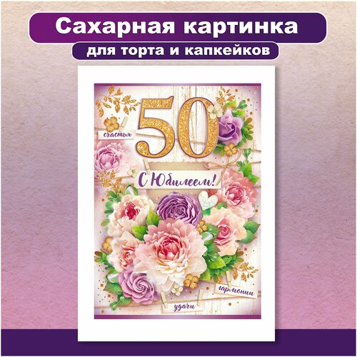 Сахарная картинка для торта и капкейков День Рождения Юбилей 50 лет. Украшение и декор торта выпечки. Сахарная бумага А4 / Вкусняшки от Машки