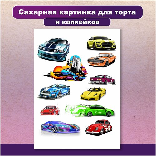 Сахарная картинка для торта и капкейков День рождения Машины гоночные. Украшение и декор торта выпечки. Сахарная бумага А4 / Вкусняшки от Машки