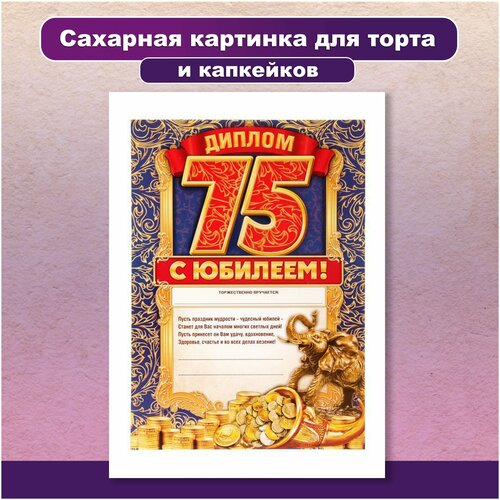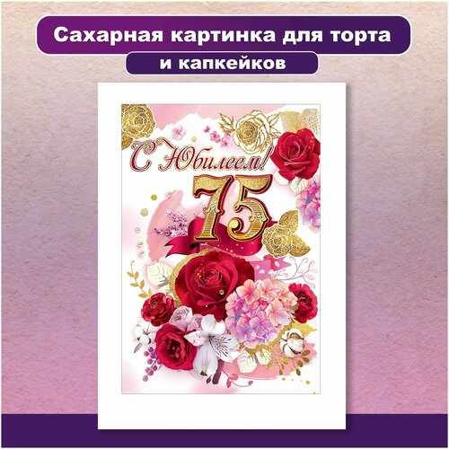 Сахарная картинка для торта и капкейков День Рождения Юбилей 75 лет. Украшение и декор торта выпечки. Сахарная бумага А4 / Вкусняшки от Машки