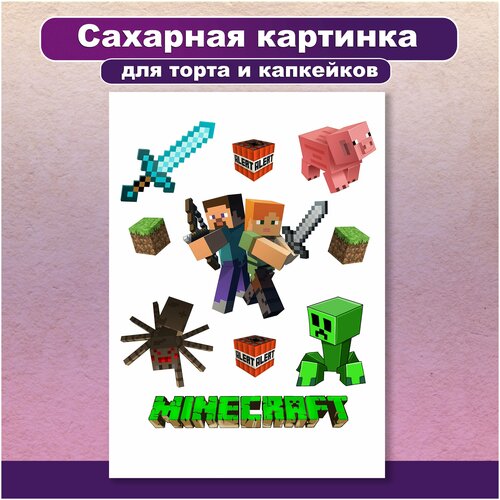 Сахарная картинка для торта и капкейков День Рождения Майнкрафт. Украшение и декор торта выпечки/ Вкусняшки от Машки