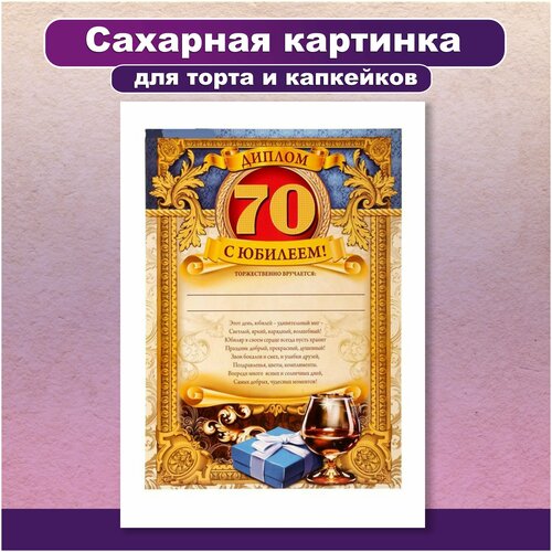 Сахарная картинка для торта и капкейков День Рождения Юбилей 70 лет. Украшение и декор торта выпечки. Сахарная бумага А4 / Вкусняшки от Машки