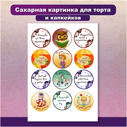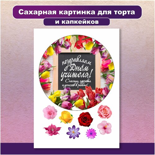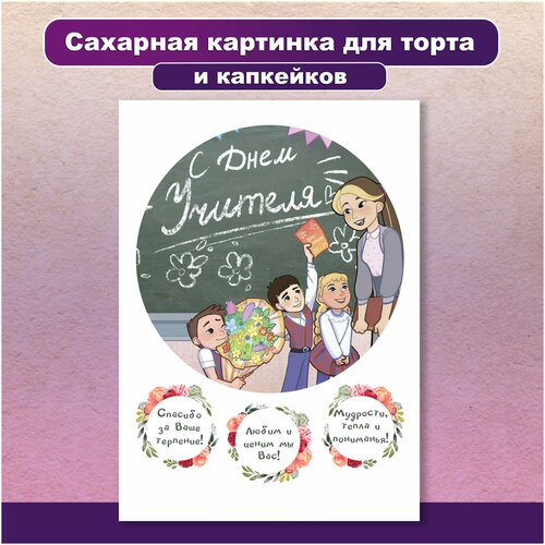 Сахарная картинка для торта и капкейков День учителя. Украшение и декор торта выпечки/ Вкусняшки от Машки
