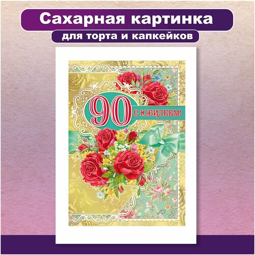Сахарная картинка для торта и капкейков День Рождения Юбилей 90 лет. Украшение и декор торта выпечки. Сахарная бумага А4 / Вкусняшки от Машки