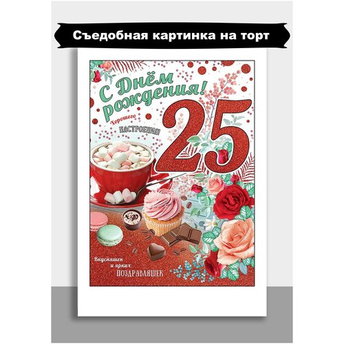 Сахарная картинка для торта и капкейков День Рождения Юбилей 25 лет. Украшение и декор торта выпечки. Сахарная бумага А4 / Вкусняшки от Машки