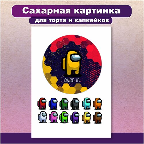 Сахарная картинка для торта и капкейков изображен Амонг Ас / подарок в день рождения / Украшение и декор торта выпечки. Сахарная бумага А4 / Вкусняшки от Машки