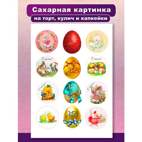 Сахарная картинка для торта и капкейков пасха. Украшение и декор торта. Сахарная бумага А4