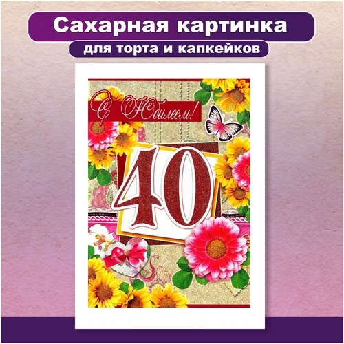 Сахарная картинка для торта и капкейков изображены поздравление "С днем рождения 40 лет юбилей". Украшение и декор торта выпечки. Сахарная бумага А4 / Вкусняшки от Машки