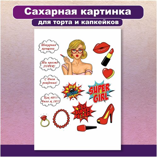 Сахарная картинка для торта и капкейков изображена "Super Star" звезда / подарок в день рождения девушке / Украшение и декор торта выпечки. Сахарная бумага А4 / Вкусняшки от Машки