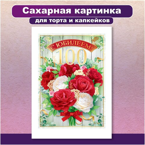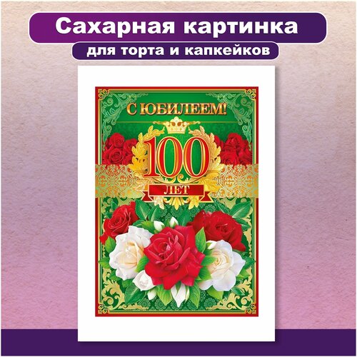 Сахарная картинка для торта и капкейков изображены поздравление "С днем рождения 100 лет юбилей". Украшение и декор торта выпечки. Сахарная бумага А4 / Вкусняшки от Машки