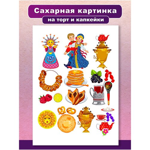 Сахарная картинка для торта и капкейков Масленница. Украшение и декор торта выпечки/ Вкусняшки от Машки