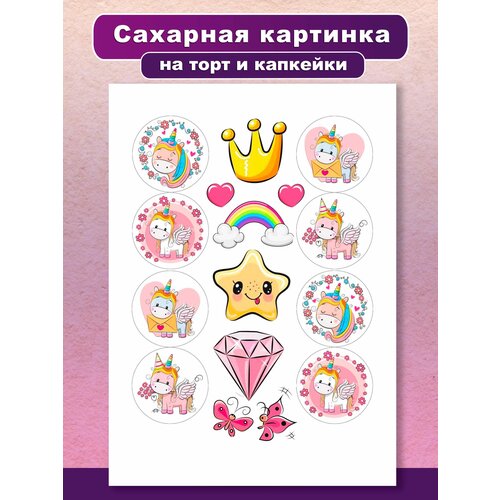 Сахарная картинка для торта и капкейков Маленькие Единорог Пони. Украшение и декор торта выпечки. / Вкусняшки от Машки