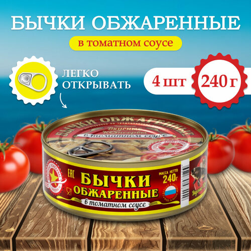 Бычки Вкусные консервы обжаренные в томатном соусе 240гр (4шт)