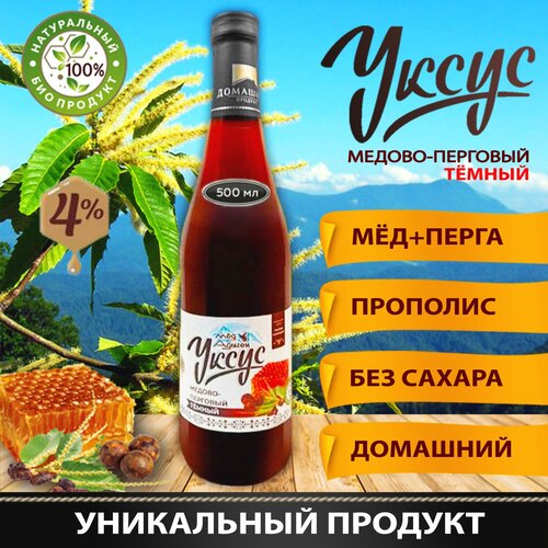 Уксус натуральный медовый с пергой Темный Микомель, нефильтрованный , непастеризованный , с прополисом 4% Вкусы Адыгеи 500 мл