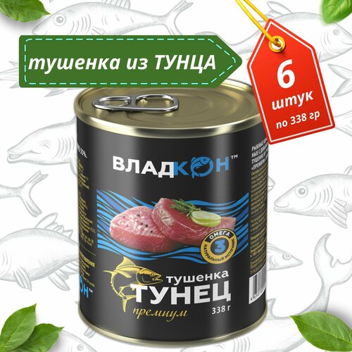 Тушёнка из тунца премиум 338 гр. 12 штук (владкон)