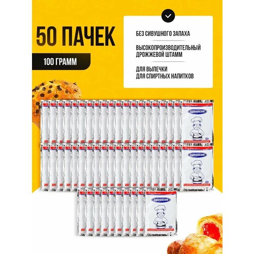 Дрожжи хлебопекарные сухие "Воронежские", для выпечки (50 пачек по 100 г)