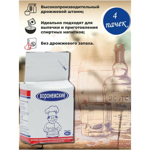 Дрожжи хлебокепарные сухие активные "Воронежские" 500 гр (4 пачки), для выпечки