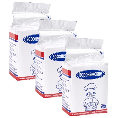 Дрожжи хлебопекарные сухие быстродействующие Воронежские 500г, 3 шт