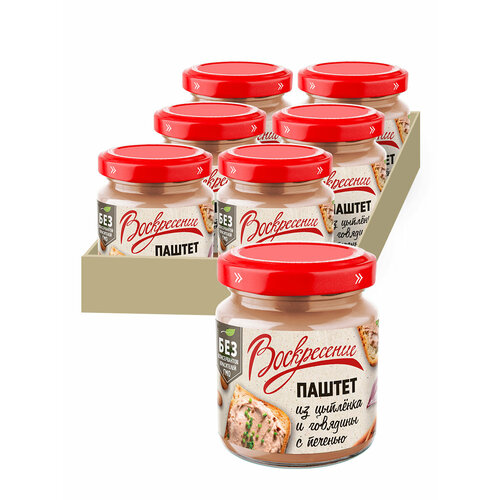 Паштет консервированный Воскресение из цыплёнка и говядины с печенью, 100 гр, 6 шт.