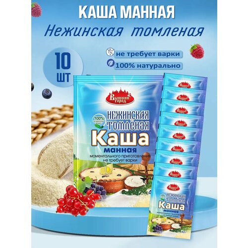 Манная каша Вышний Город Нежинская, со сливочным маслом и изюмом, без варки, 10 пакетиков