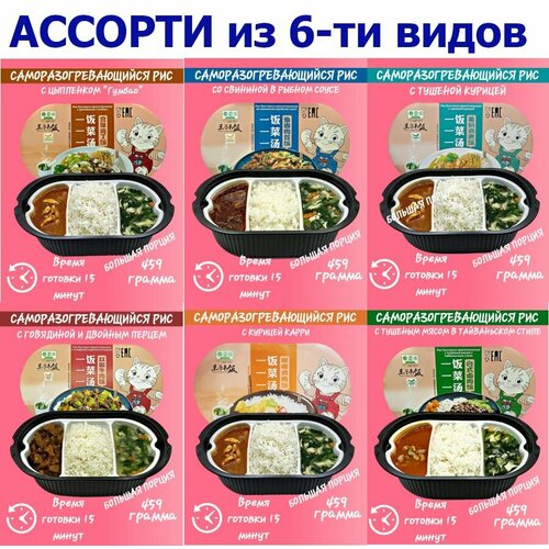 Рис саморазогревающийся ассорти из 6-ти видов, 0,2970 гр, Wang ZI Feng Fan