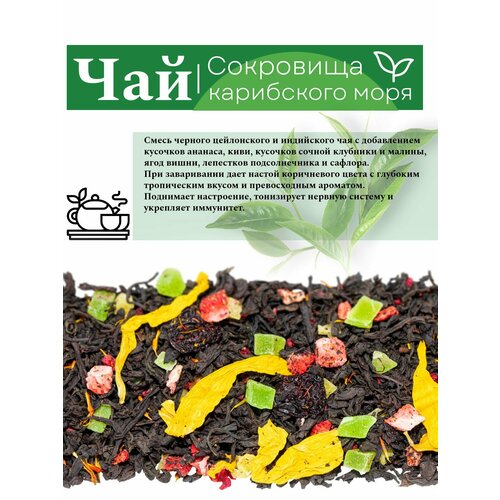 Чай черный WEISERHOUSE Сокровища Карибского моря, 250 г с добавлением кусочков ананаса, киви, кусочков сочной клубники и малины