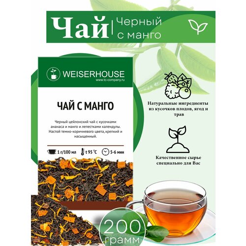 Чай черный "Чай с манго", 200 г, WEISERHOUSE листовой цейлонский чай с добавлением кусочков ананаса, манго и лепестков календулы