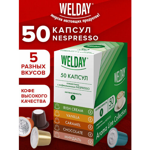 Кофе в капсулах для кофемашины Nespresso, 50 порций, 5 вкусов, Welday Aroma Line Collection, 623747