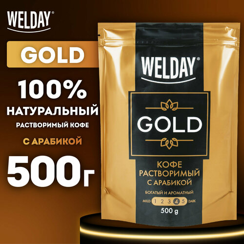 Кофе растворимый WELDAY "GOLD", сублимированный, 500 г, мягкая упаковка, 622673
