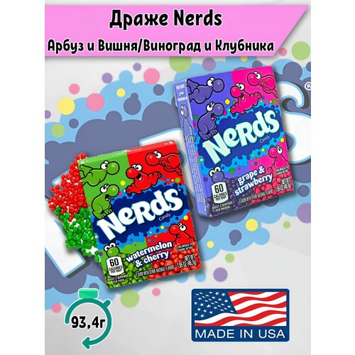 Драже Wonka Nerds Арбуз и Вишня, Клубника и Виноград, набор из 2 упаковок по 47 гр. (США)