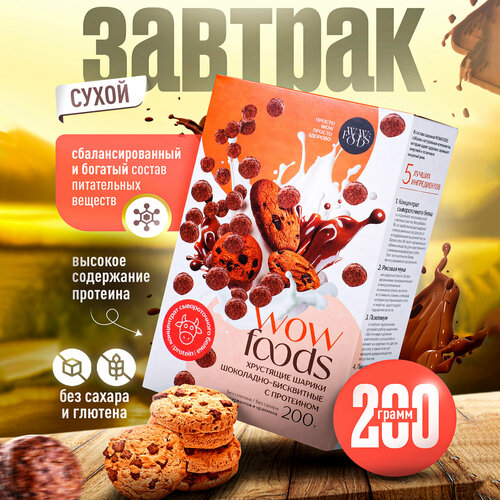 Хрустящие шарики шоколадно-бисквитные с протеином, без глютена, без сахара, 200 г
