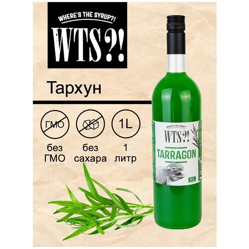 Сироп "WTS?!" для коктейлей, кофе и лимонада, с терпким вкусом Тархун, без сахара / Топпинг для мороженого, торта и десертов / Сироп Тархун, 1 л