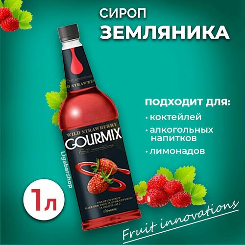 Сироп для кофе, чая и коктейлей Gourmix (Гурмикс) Земляника 1л. Для кофеен и для дома.