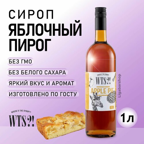 Сироп WTS! Яблочный пирог стекло 1 л. Для лимонада, кофе и коктейлей. Топпинг для десерта. Для кофеен и для дома. Без сахара. Без ГМО